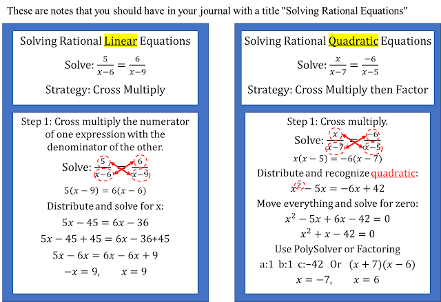 Unit 4.1,4.2 - Solving Rational Linear and Quadratic Equations